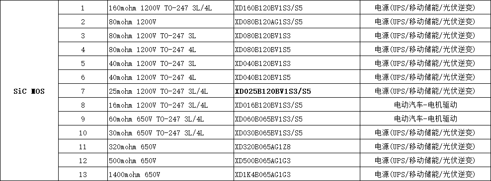 XD025B120BV1S3/S5 25mohm 1200V TO-247 3L/4L 电源(UPS/移动储能/光伏逆变)