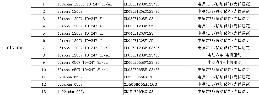XD500B065AG1G3 SiC MOS 500mohm 650V 电源(UPS/移动储能/光伏逆变)