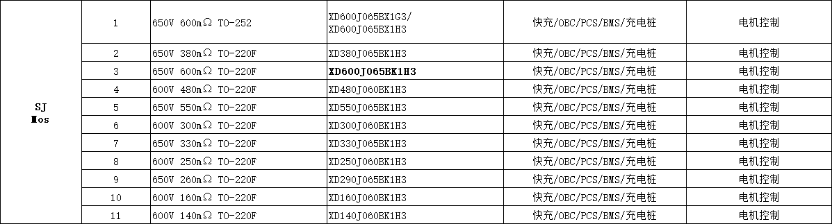 XD600J065BK1H3 芯达茂 SJ Mos 650V 600mΩ TO-220F 快充/OBC/PCS/BMS/充电桩