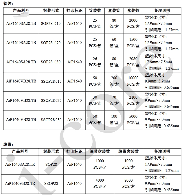 AiP1640SA28:SOP28封装,适用于需要较小封装尺寸的应用。