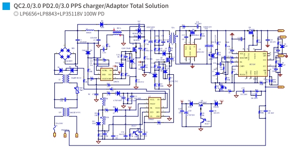 CRM模式PFC+高频QR:LP6656和LP8843 PWM控制器组合,适合75W至140W大功率PD快充,推荐100W PD。