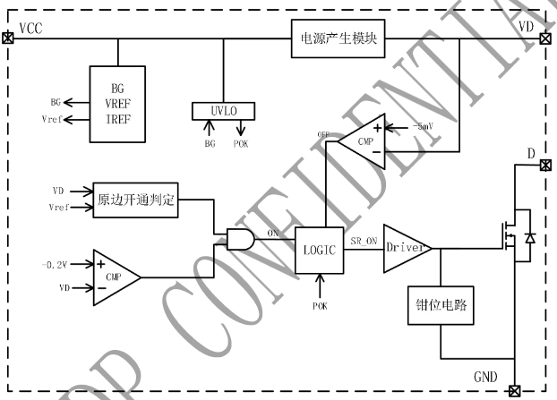 LP05R045T采用的专利整流管开通技术,通过检测D和GND之间的下降电压阈值和下降速率,准确判断同步整流管的开启。这种技术有效避免了因激磁振荡引起的误动作,提高了整流的准确性和可靠性。