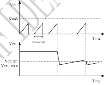 LP8776AH具有VCC欠压保护功能,当VCC电压下降到设定的欠压阈值(通常为7.0V至9.0V)时,芯片将停止工作,以防止在低电压下工作可能导致的不稳定和损坏。这一功能确保了芯片在电源电压不稳定或突然下降时能够安全地关闭,避免了因电压不足而导致的性能下降或损坏。
