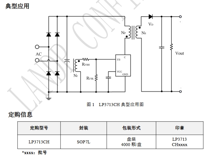 LP3713CH是一款专为隔离型适配器和充电器设计的自供电原边反馈控制芯片。它具有以下特点: