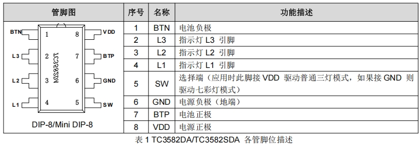 封装形式:COB、DIP-8(TC3582DA)、Mini DIP-8(TC3582SDA)