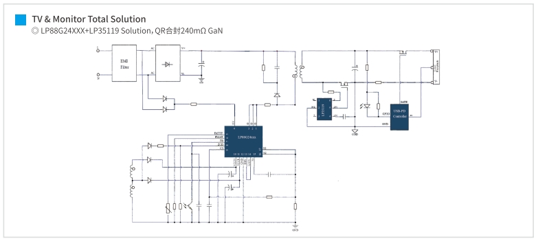 基于高频QR控制器LP8842xXX和GaN技术LP88G24xxx的75W电源方案,以其高效率、小体积和高可靠性,为现代电子设备提供了理想的电源解决方案。随着GaN技术的不断发展和成本的降低,我们期待这种高性能的电源方案能够在更广泛的应用领域得到推广和应用。
