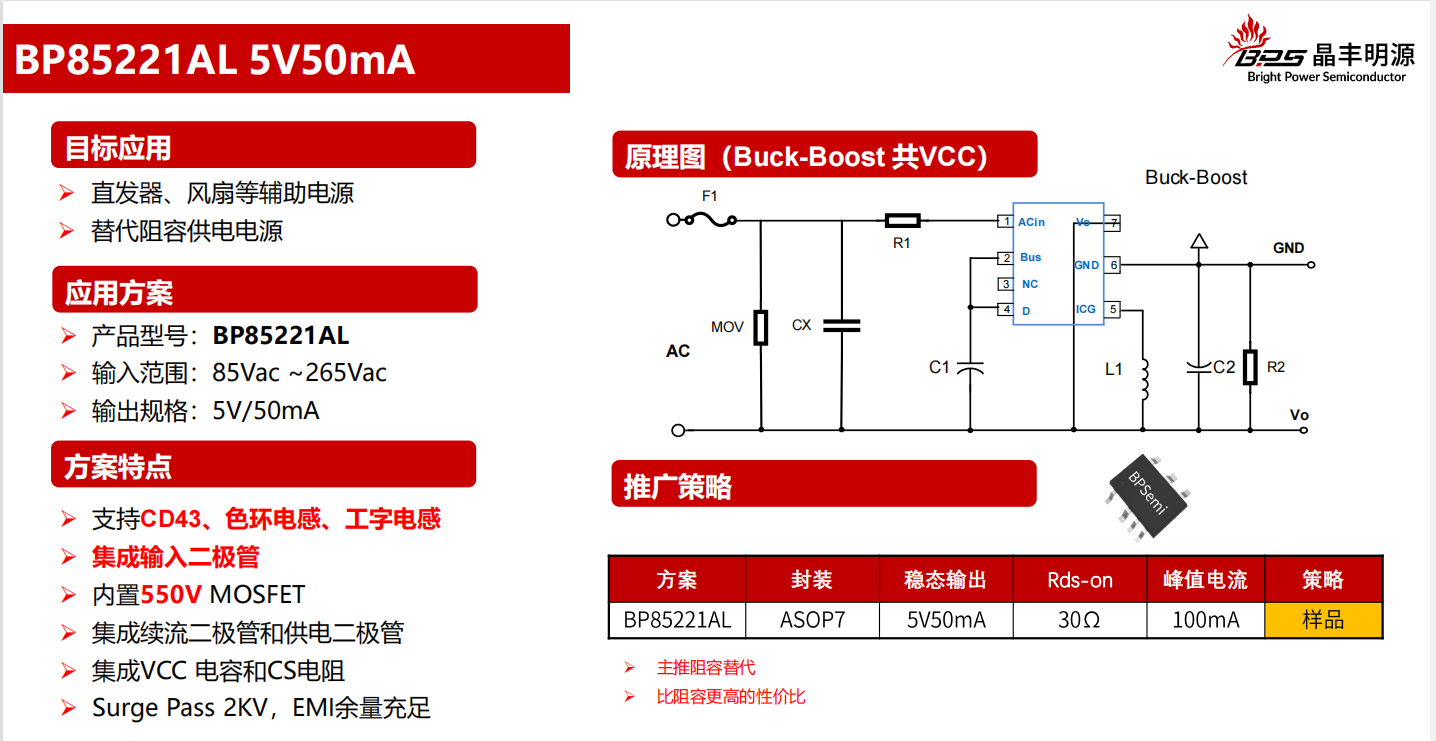 更灵活的设计:BP85221AL支持多种输入电压范围,适应性强,可以广泛应用于不同的电源设计中。