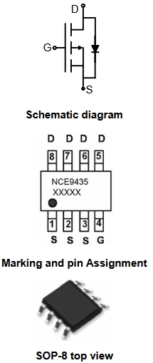 NCE9435采用先进的沟槽技术,提供优异的Rps(on),低栅极电荷和低至4.5V的栅极电压操作。该器件适用于负载开关或PWM应用。