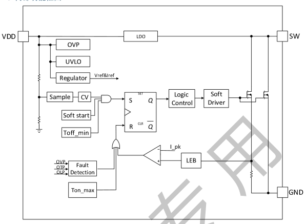 功率MOS漏极电压:650V,这是芯片能够承受的最大漏极电压,适用于高电压输入场景。