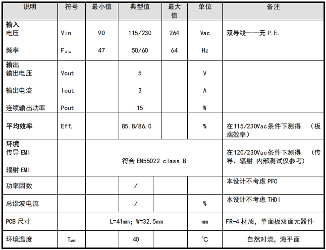 下表给出的是设计的最低可接受指标,实际性能在后续的测试结果部分给出。