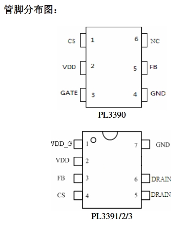 PL339X系列芯片包括PL3390、PL3391、PL3392和PL3393等不同型号。虽然它们都基于相同的架构,但在某些功能和参数上可能存在细微差异,以适应不同的应用需求。例如,PL3390可能更适合于对启动电流要求极低的场合,而PL3391、PL3392和PL3393则可能在不同的输出功率和保护功能上有所侧重。具体型号的选择需要根据实际应用中的功率需求、保护功能要求以及电路设计的复杂程度来决定。