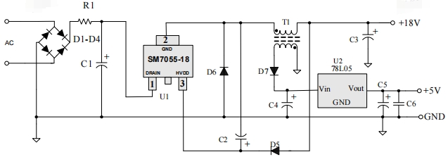 SM7055-18明微18V 250MA非隔离电源芯片直接替代VIP12/PN8012/CSC7612