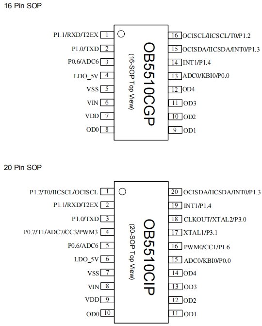 OB5510 系列芯片包括 OB5510CGP(SOP16 封装)和 OB5510CIP(SOP20 封装),均由国内知名半导体企业昂宝电子精心打造。该系列芯片专为卫浴吊顶和烟机等家电应用量身定制,具备强大的功能与出色的性能表现,能够满足不同场景下的多样化控制需求。