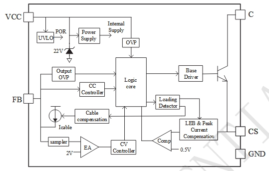 过流保护(OCP):检测开关管电流是否超过设定值,超过时限制电流。