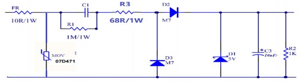 4.对于电源高频杂波,C1限流失效导致后级烧毁,因此需要额外的功率绕线电阻限流。