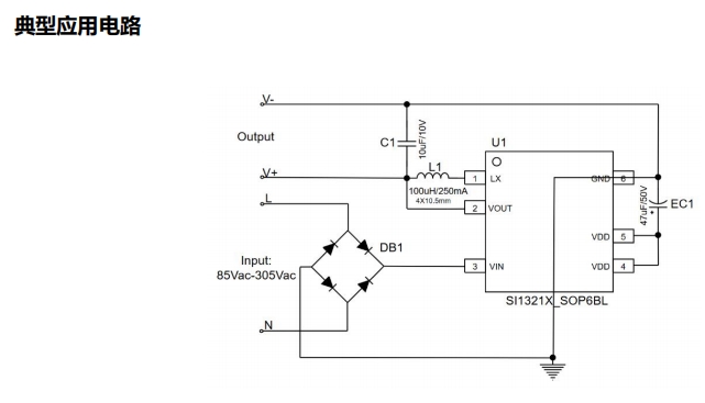 SI1321X系列芯片设计注重紧凑性与易用性,兼容CD32/43贴片电感和0410色环电感,无需额外的π型滤波或安规电容即可满足EMI标准,大大简化了电路设计。此外,输入端免去了高压电解电容的使用,进一步降低了成本和体积,使得该芯片在空间受限的应用场景中更具优势。