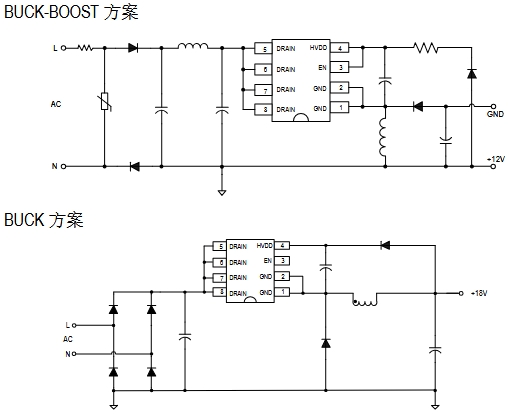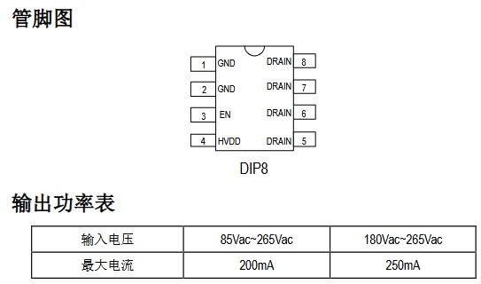 最大输出电流 | 12V输出时最大100mA(85Vac-265Vac), 18V输出时最大100mA(85Vac-265Vac) | 85Vac~265Vac 最大电流 200mA 180Vac~265Vac最大电流 250mA |