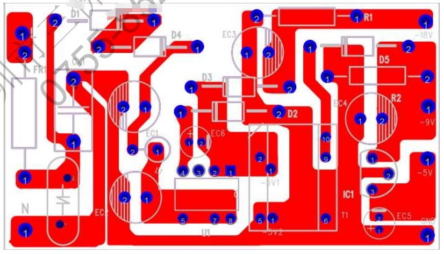 PCB设计对于电源的性能和稳定性至关重要。本方案采用单面板设计,元件分布合理,布线简洁明了。以下是PCB的顶面和底面布局图: