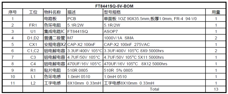 在现代电子设备中,小家电辅助电源的需求日益增长,对电源的性能要求也越来越高。FT8441SQ凭借其卓越的性能,成为设计高精度、高效率、低成本恒压输出开关电源的理想选择。本文将深入解析基于FT8441SQ的5V250mA开关电源方案,涵盖其设计特点、电源规格、电路原理图、PCB布局以及物料清单(BOM)等关键内容。