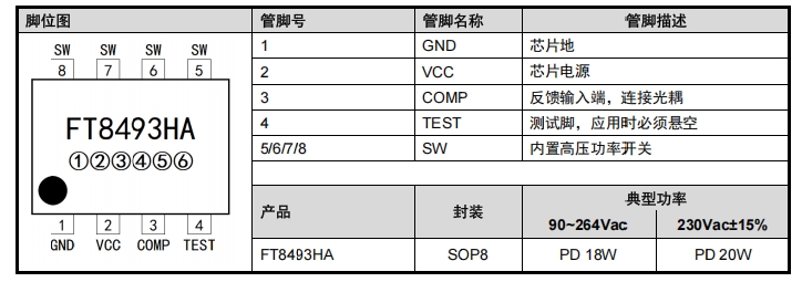 FT8493HA辉芒微SOP8封装PD20W次边反馈开关电源转换器芯片