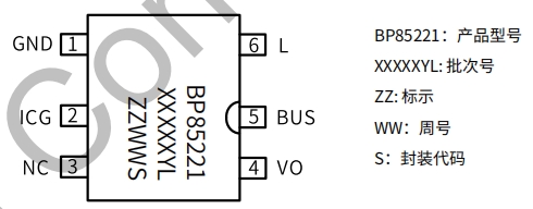 BP8522SL 采用了 SSOP-6 封装形式,这种封装方式不仅体积小巧,还具备良好的散热性能,适合应用于紧凑型电源设计。以下是 BP8522SL 的管脚封装图(如图 3 所示)及各管脚的功能描述: