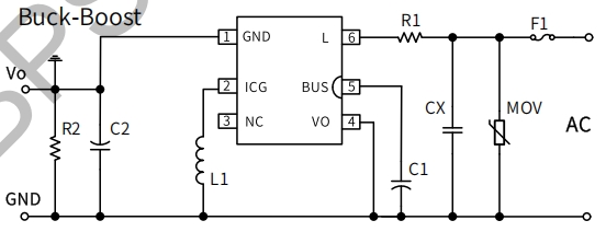 L(管脚 6):内置整流桥二极管的阳极,连接到 AC 端。该管脚直接与交流输入电源相连,通过内置整流桥二极管将交流电转换为直流电,为后续的电源转换提供基础。