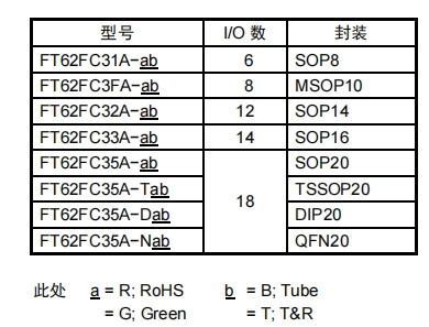 FT62FC6X系列的基础型号为“FT62FC”,其中: