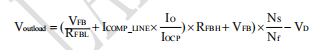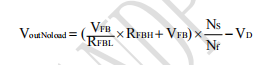 其中,RFBH是FB外接的上偏电阻,RFBL是FB外接的下偏电阻,ICOMP_LINE是满载经过FB上偏电阻的输出线补偿电流,Nf是辅助绕组匝数,VFB是基准电压(典型值1.0V),VD为输出续流管压降,IO为带载电流,IOCP为输出恒流电流。