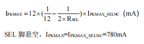 SEL脚外接电阻RSEL,可调最大峰值电流IPKMAX。公式如下: