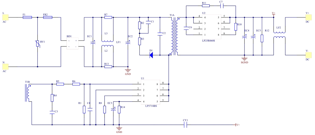 1 | U1 | LP3718BS | SOP-8 PWM控制器 | 1 |