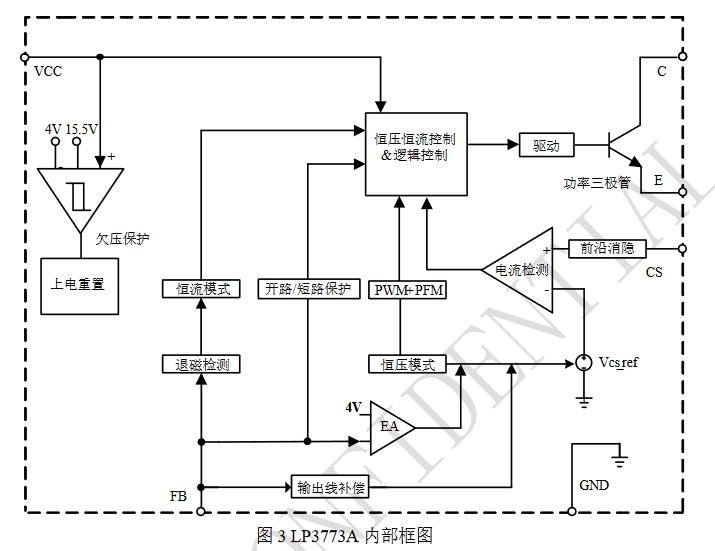 LP3773A采用SO-7封装,集成高压启动、恒压(CV)控制及过流?;ぃ∣CP)功能,支持90-420VAC宽输入电压范围。其关键特性包括: