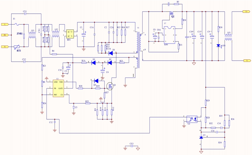 LP8773:作为主控芯片,LP8773内部集成了PWM控制器、高压启动电路、过压保护、过流保护等多种功能,确保了电源的稳定运行。