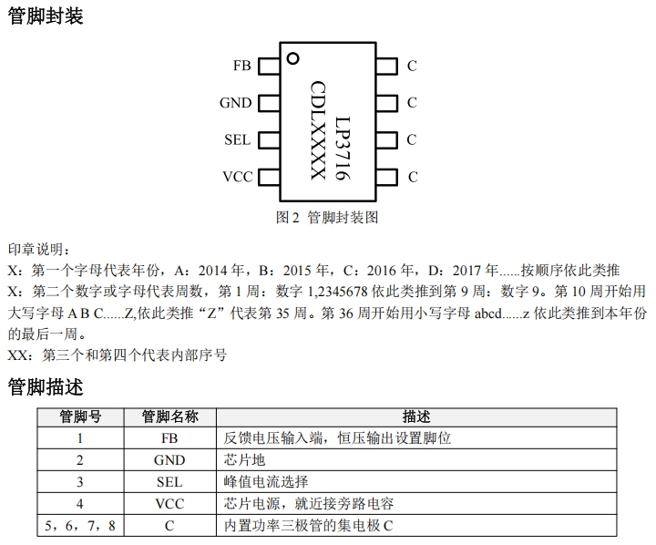 LP3716CDL内置启动电路,无需外部启动电阻。系统上电后,内部电路会自动给VCC电容充电,当VCC电压达到启动阈值时,芯片开始工作。