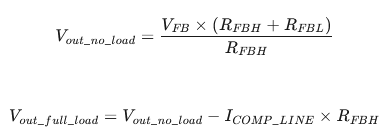 其中,RFBH和RFBL分别为FB外接的上偏电阻和下偏电阻,ICOMP_LINE为满载时经过FB上偏电阻的输出线补偿电流。