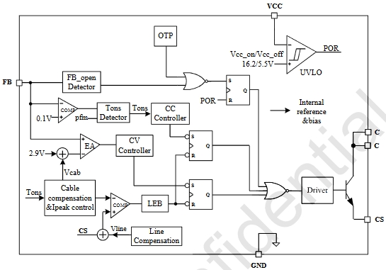 恒流(CC)和恒压(CV)控制:通过原边控制实现,无需次级反馈电路。