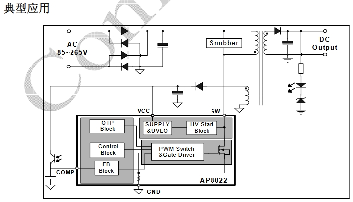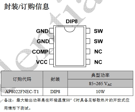 AP8022(Chipown)在 10 W 以内的小功率离线反激方案里非常常见:
