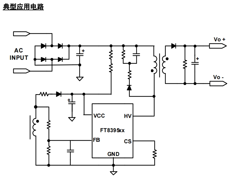 以下是 FT8395KD2 的典型应用电路,适用于 24W 到 30W 的待机电源设计。