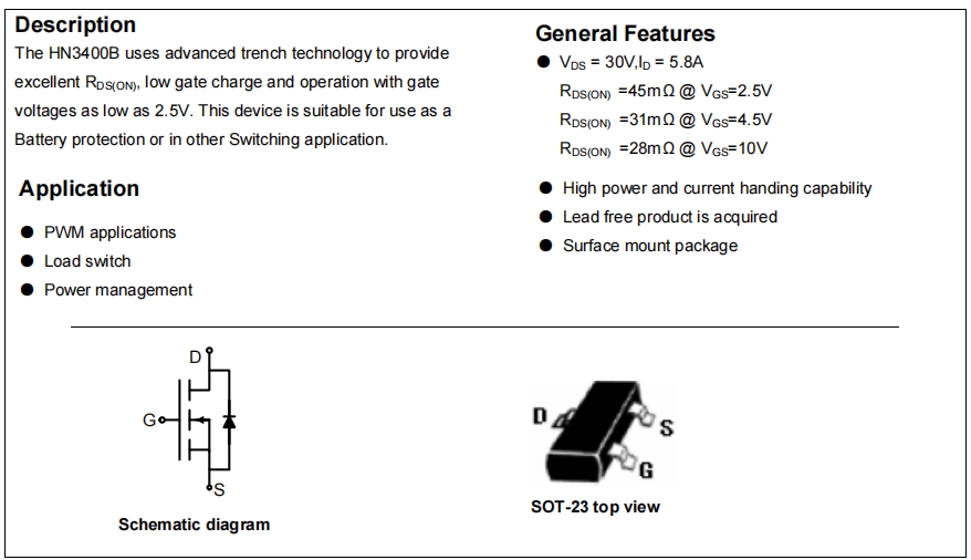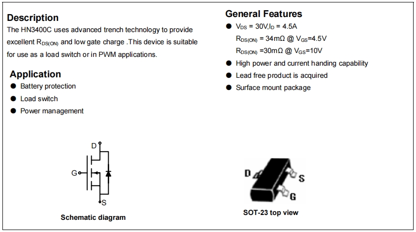 HN3400C:小电流、高速度、低电荷,适合做高频 PWM 或负载开关,散热更好(R<sub> 仅 73.5 °C/W)。