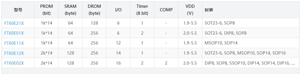 │ └─ FT60E02X(16 I/O,双比较器)