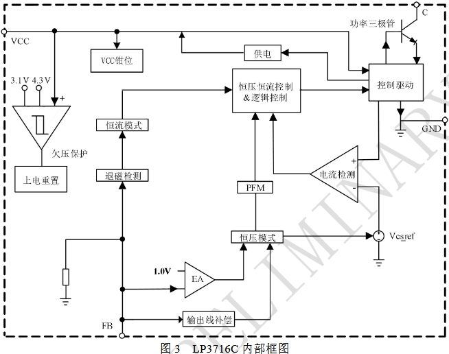 LP3716C:底部裸露焊盘需通过PCB散热,实测在12W满载时芯片温度达105℃(环境温度25℃)。LP3716C内部框架图如下所示~