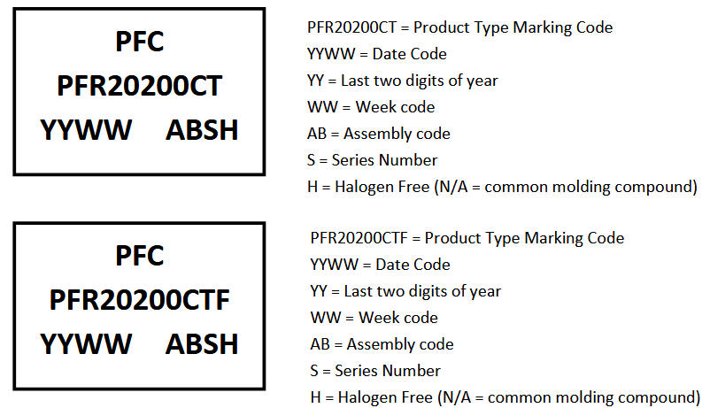 正面丝印应为两行:首行“PFR20200CTF”,次行“YYWW ABSH。
