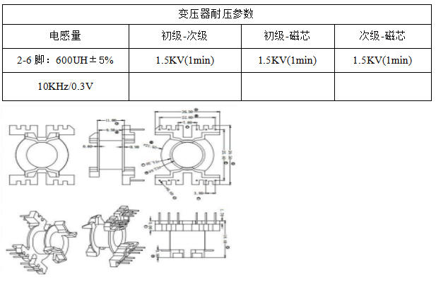 成品测试:1 kHz/0.3 V下LP 600 μH ±5 %,漏感<30 μH,Q>60
