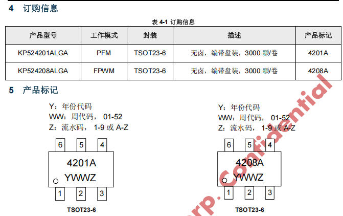 | KP524208A | FPWM | 强制连续模式,固定频率,低纹波,适合通信/逻辑供电 |