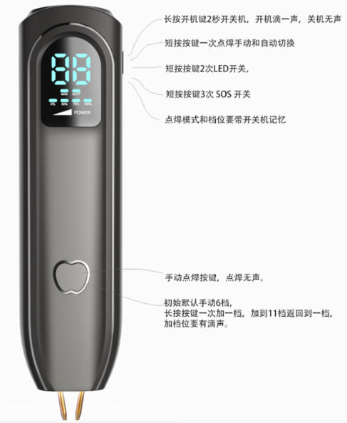任何模式下连续短按2次,开关照明LED,方便昏暗环境对准焊点,状态掉电记忆。