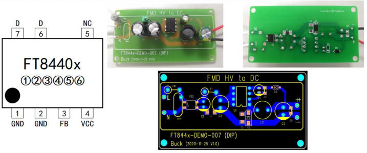FT8440AD 支持 Buck 与 Buck-Boost 双拓扑,同一套 BOM 只需改 2 个器件即可切换,方便一张 PCB 兼容 110 V 与 220 V 市场。