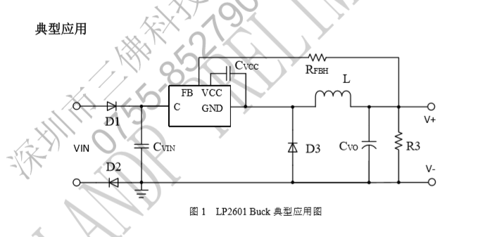 LP2601 内部集成高压功率管,采用恒压控制模式,系统工作在电感电流临界模式。方案可靠性强,外围应用简单。