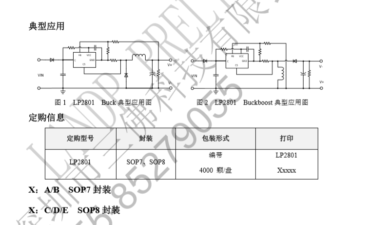 LP2801A非隔离电源芯片,输出电压可调,电流100MA,封装:SOP7
