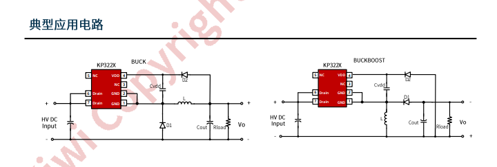 KP321X 系列是一款高性能低成本 PWM 控制功率开关,适用于离线式小功率降压型应用场合,外围电路简单、器件个数少。同时产品内置高耐压MOSFET 可提高系统浪涌耐受能力。