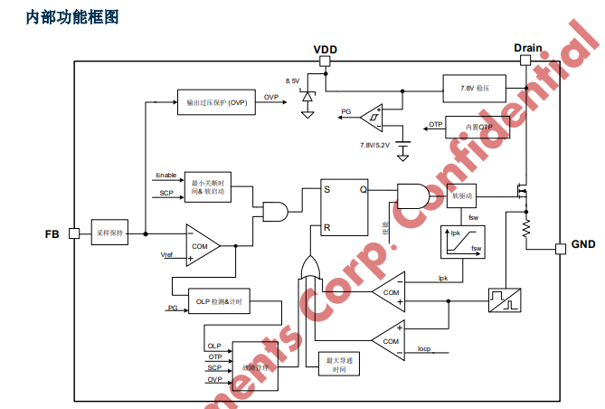 KP3114 集成有完备的带自恢复功能的保护功能: VDD 欠压?;?、逐周期电流限制、输出过压保护、过热?;?、过载?;ず?VDD 过压?;さ取?br/>