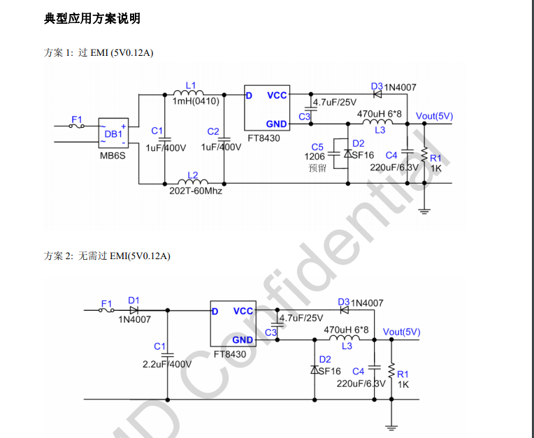 FT8430采用超高压工艺,内部集成高压启动电路,高压功率开关,以及电流采样电阻,减少了外部元器件,极大地简化了系统应用。内置的频率抖动和软驱动设计能有效提高EMI性能。